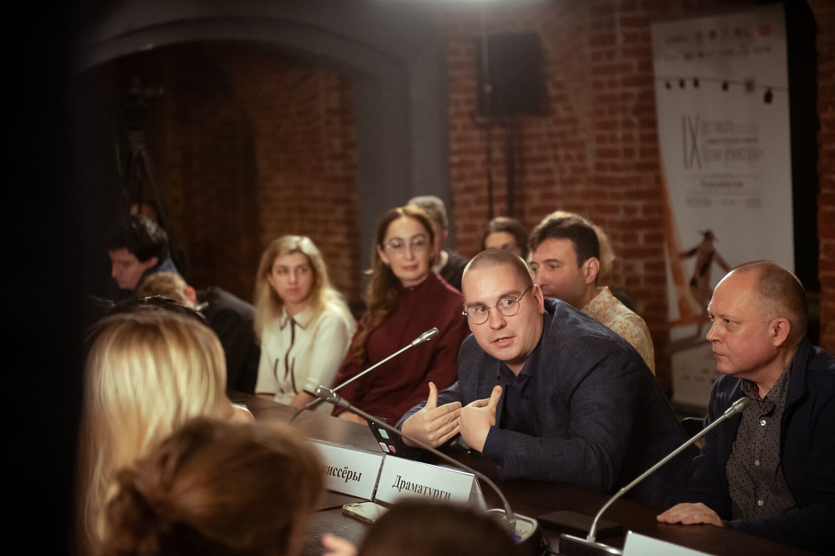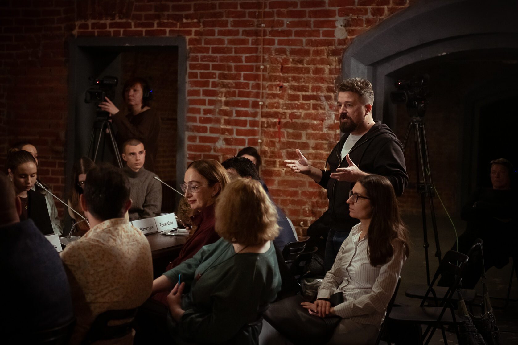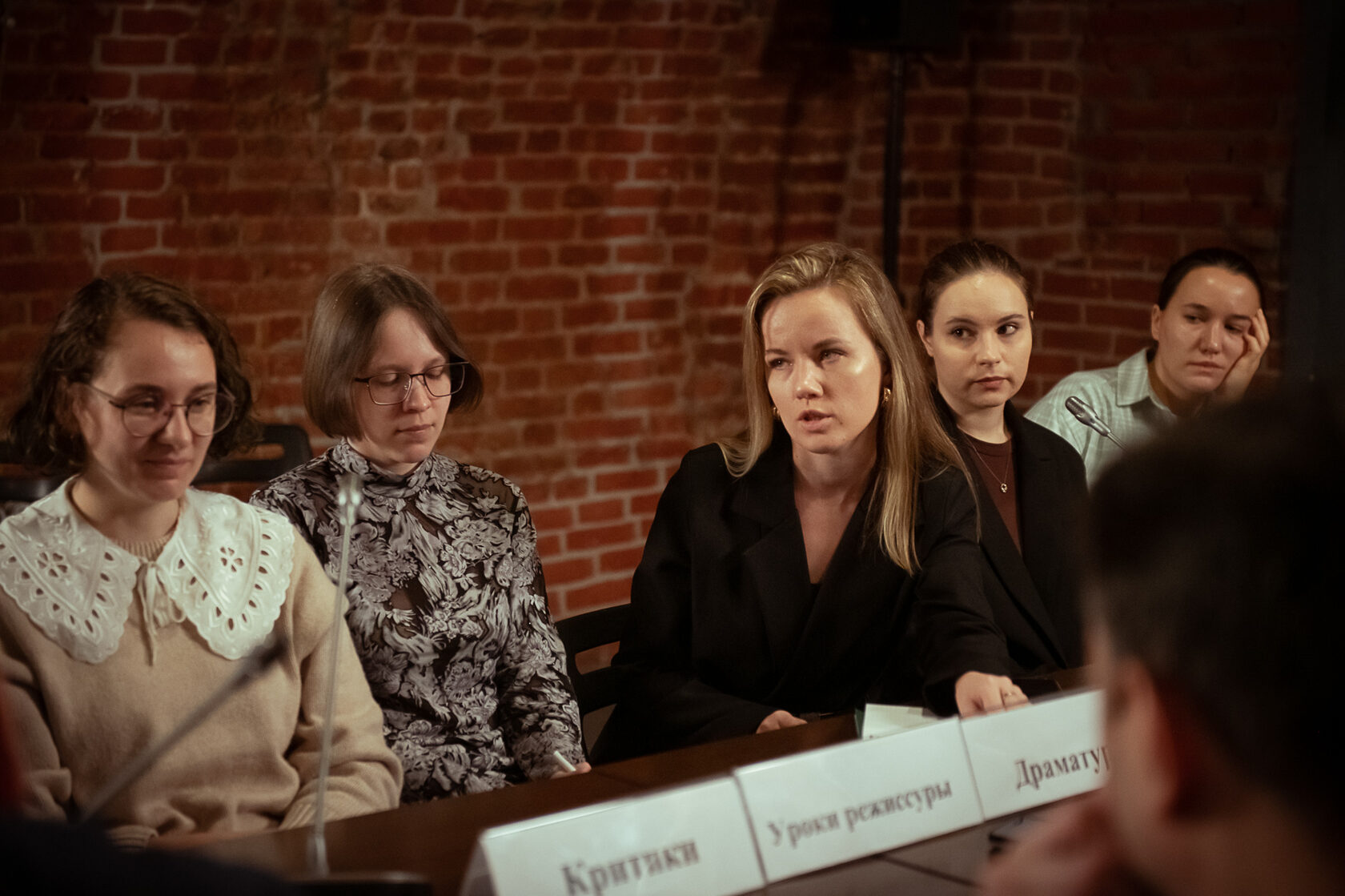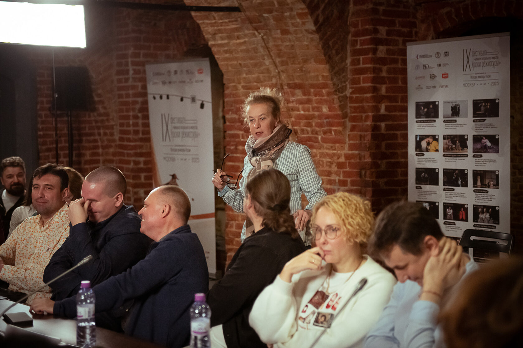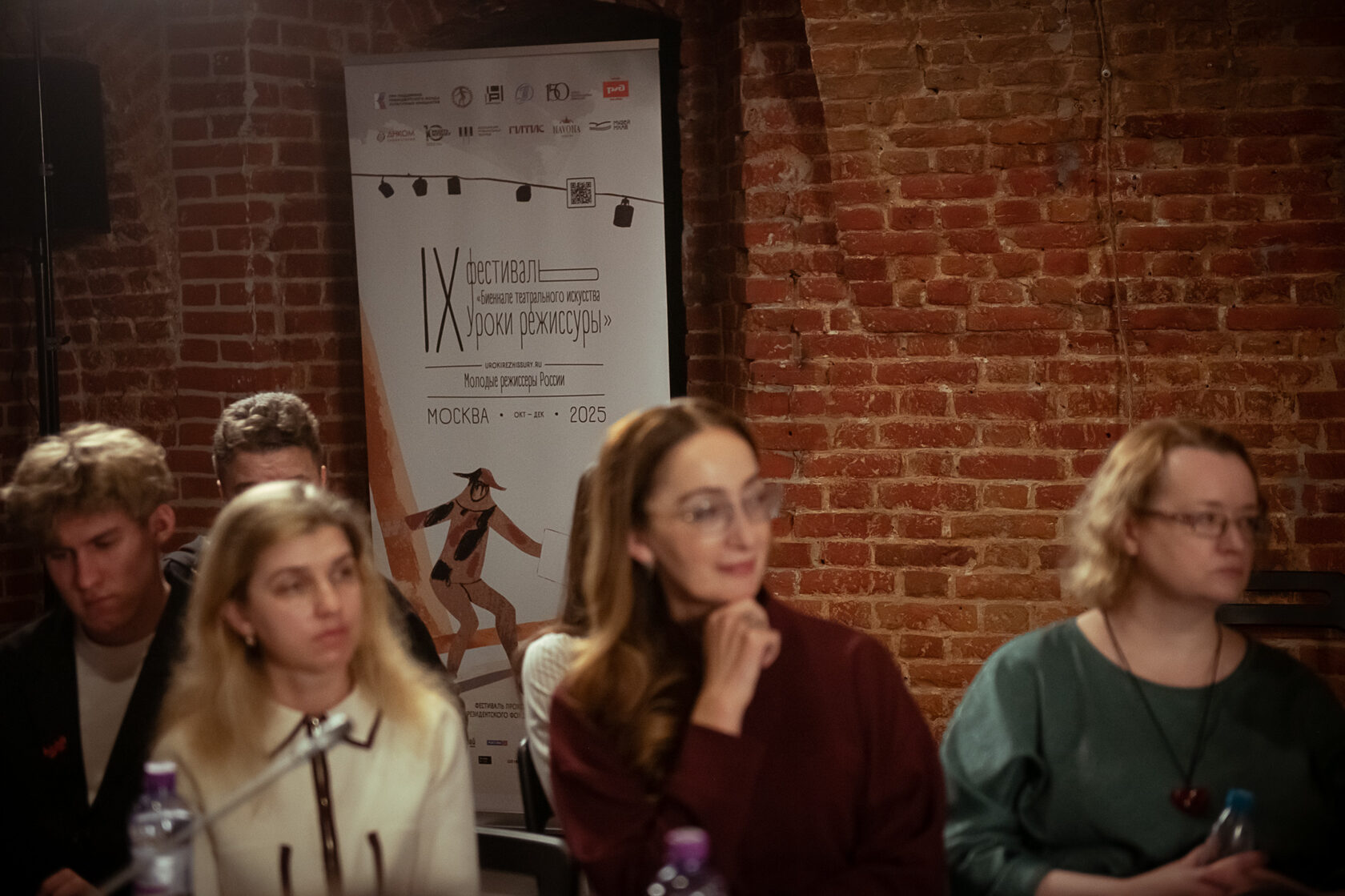 28 октября в Боярских палатах СТД РФ состоялся Круглый стол. Это ежегодное событие off-программы фестиваля. В прошлом году оно было посвящено творчеству Вс.Э. Мейерхольда и приурочено к 150-летию Мастера. На сей раз в центре внимания оказались молодые режиссеры, драматурги и критики. Это продолжение и воплощение одного из фундаментальных принципов «Уроков режиссуры» – создание пространства профессионального диалога и преодоление давнего стереотипа об одиночности и одиночестве людей театра. Фестиваль способствует как общению и обмену идеями, опытом представителей разных поколений, так и объединению, сотрудничеству, дружбе театральных деятелей внутри одного поколения тоже.