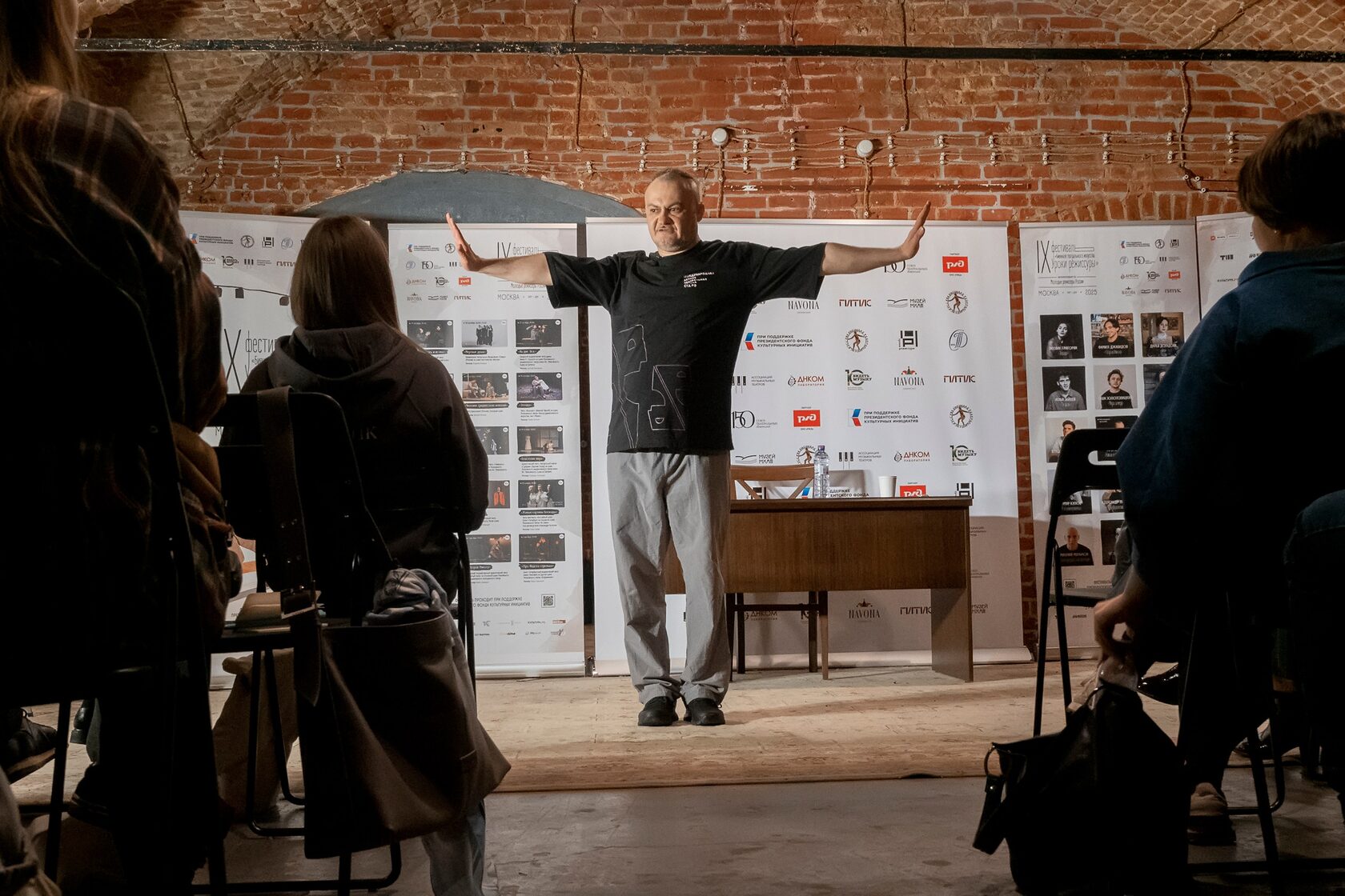 Образовательная программа «Мастерская» продолжилась встречей с Искандером Сакаевым – режиссером, участником «Уроков режиссуры» 2024 г. и членом жюри фестиваля этого года, долгие годы руководившим Камерным драматическом театром «Левендаль» в Санкт-Петербурге и назначенным с ноября 2025 г. на должность главного режиссера Ульяновского театра драмы имени И.А. Гончарова.
