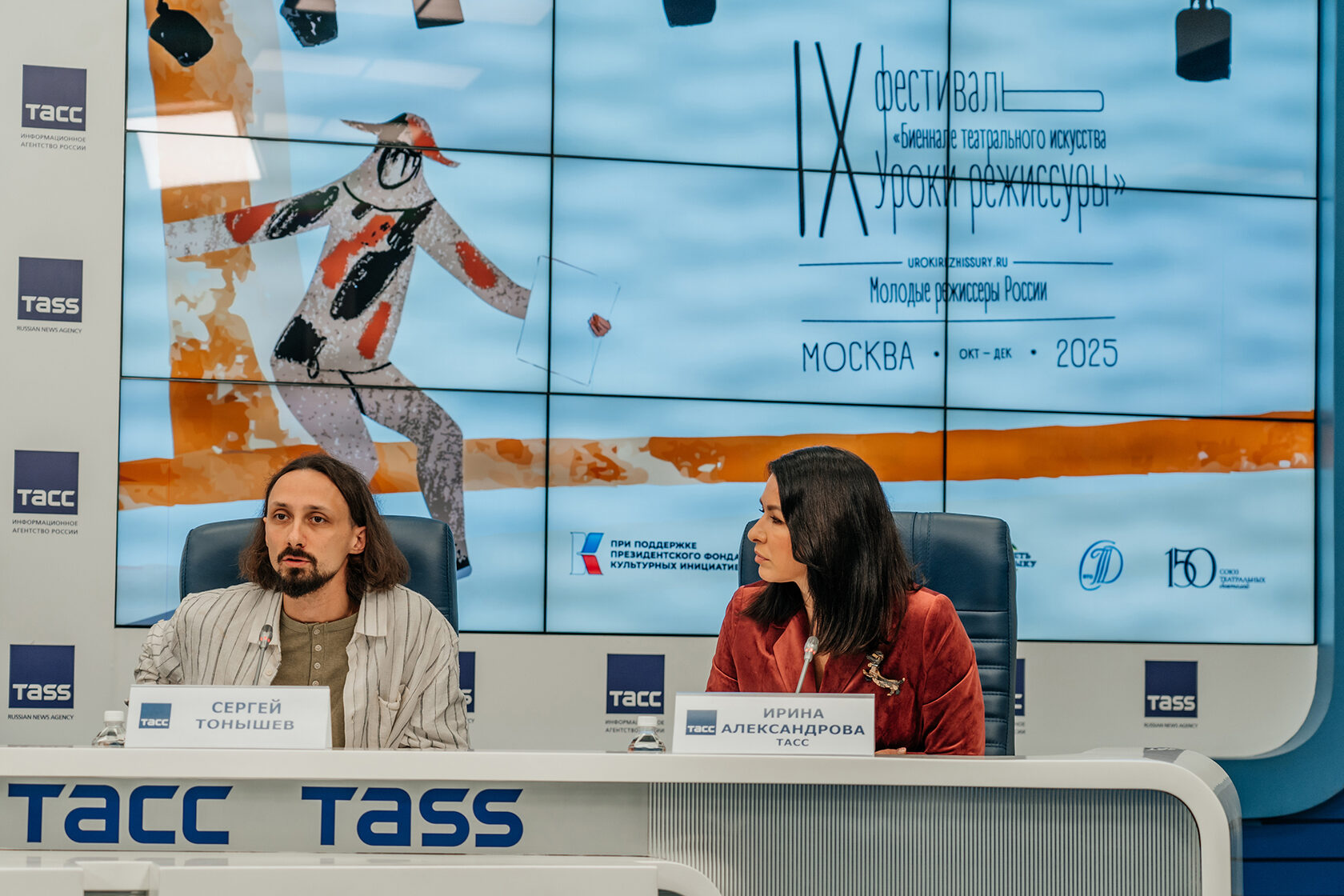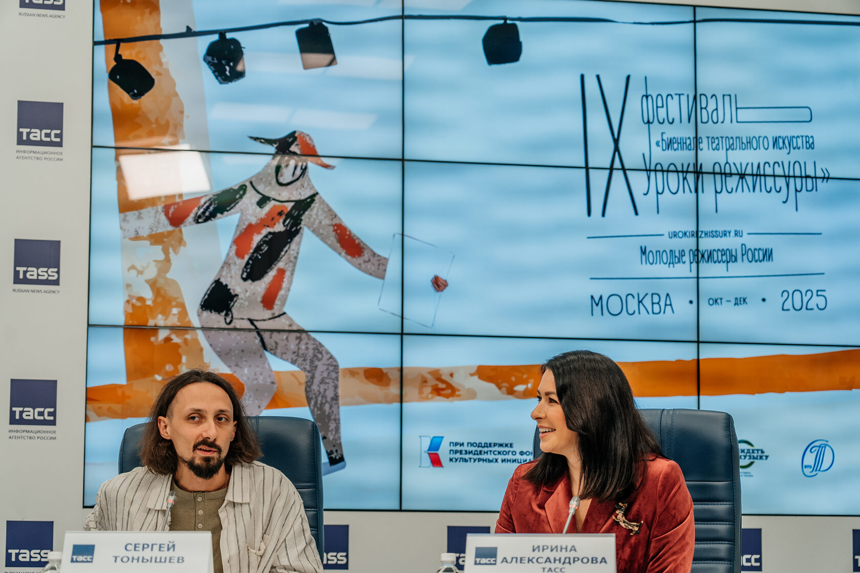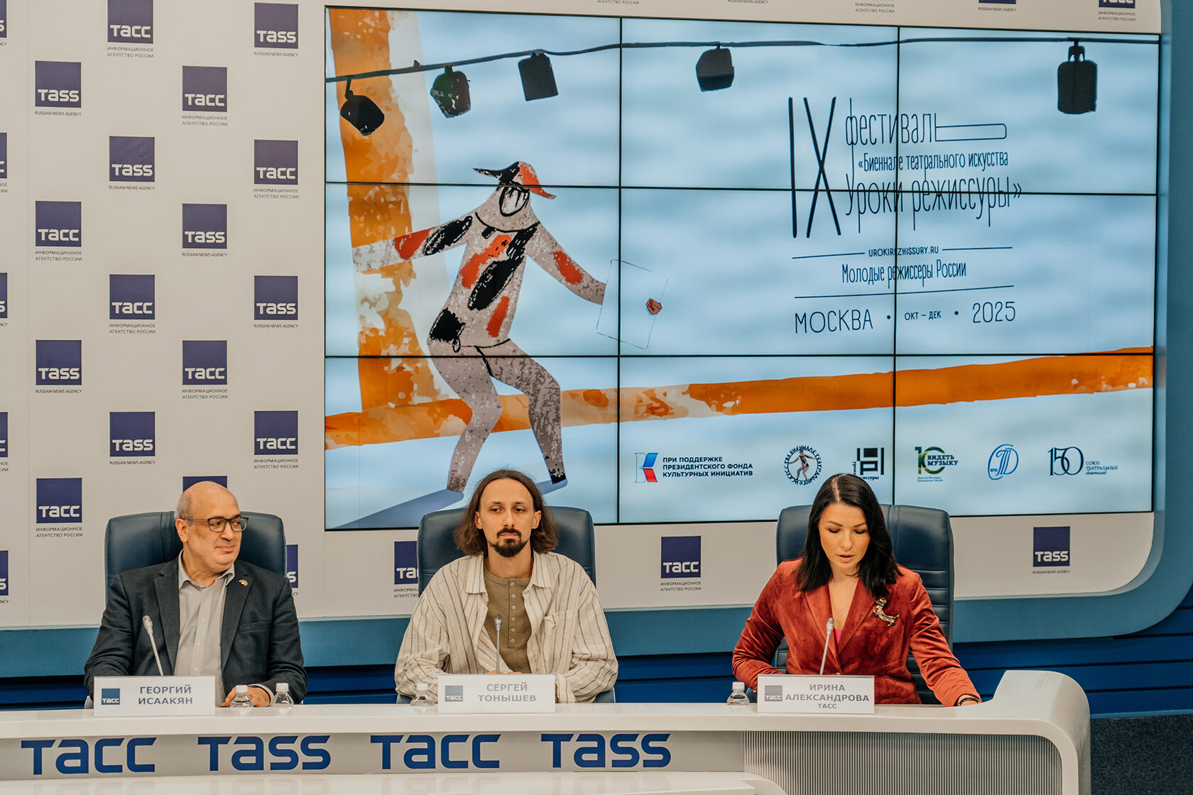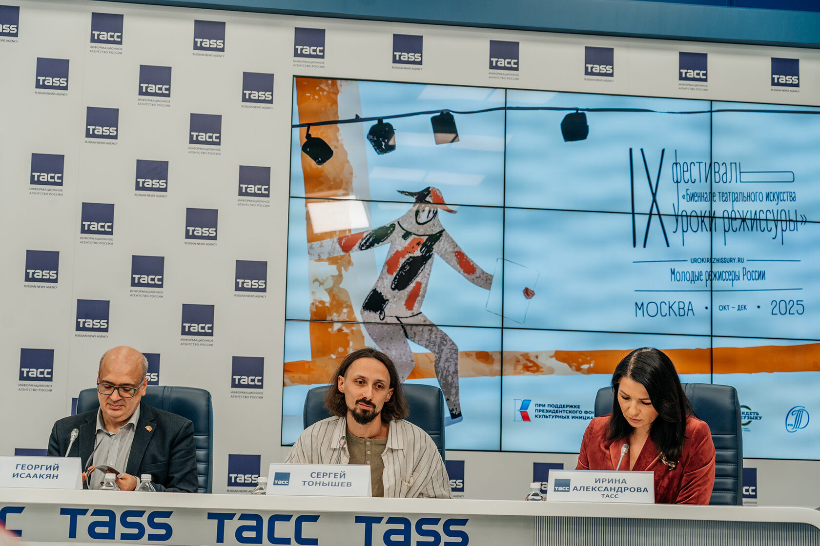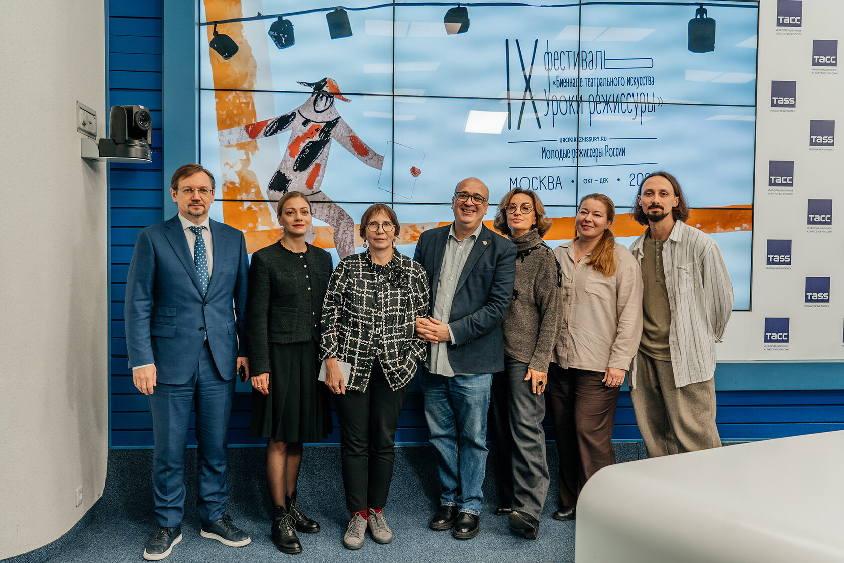17 октября в ТАСС прошла пресс-конференция, посвященная открытию IX фестиваля «Уроки режиссуры». О концепции фестиваля, конкурсной программе, спецпроектах биеннале и об участниках рассказали: заместитель начальника управления президента РФ по общественным проектам Александр Журавский, арт-директор фестиваля «Уроки режиссуры» профессор Школы-студии МХАТ Ольга Егошина, художественный руководитель Московского государственного академического музыкального театра имени Н. И. Сац, президент Ассоциации музыкальных театров, член жюри фестиваля Георгий Исаакян, а также участники фестиваля - режиссер и художественный руководитель театра «Вахтанговский практикум» Ася Князева и режиссер, театральный педагог Сергей Тонышев.
