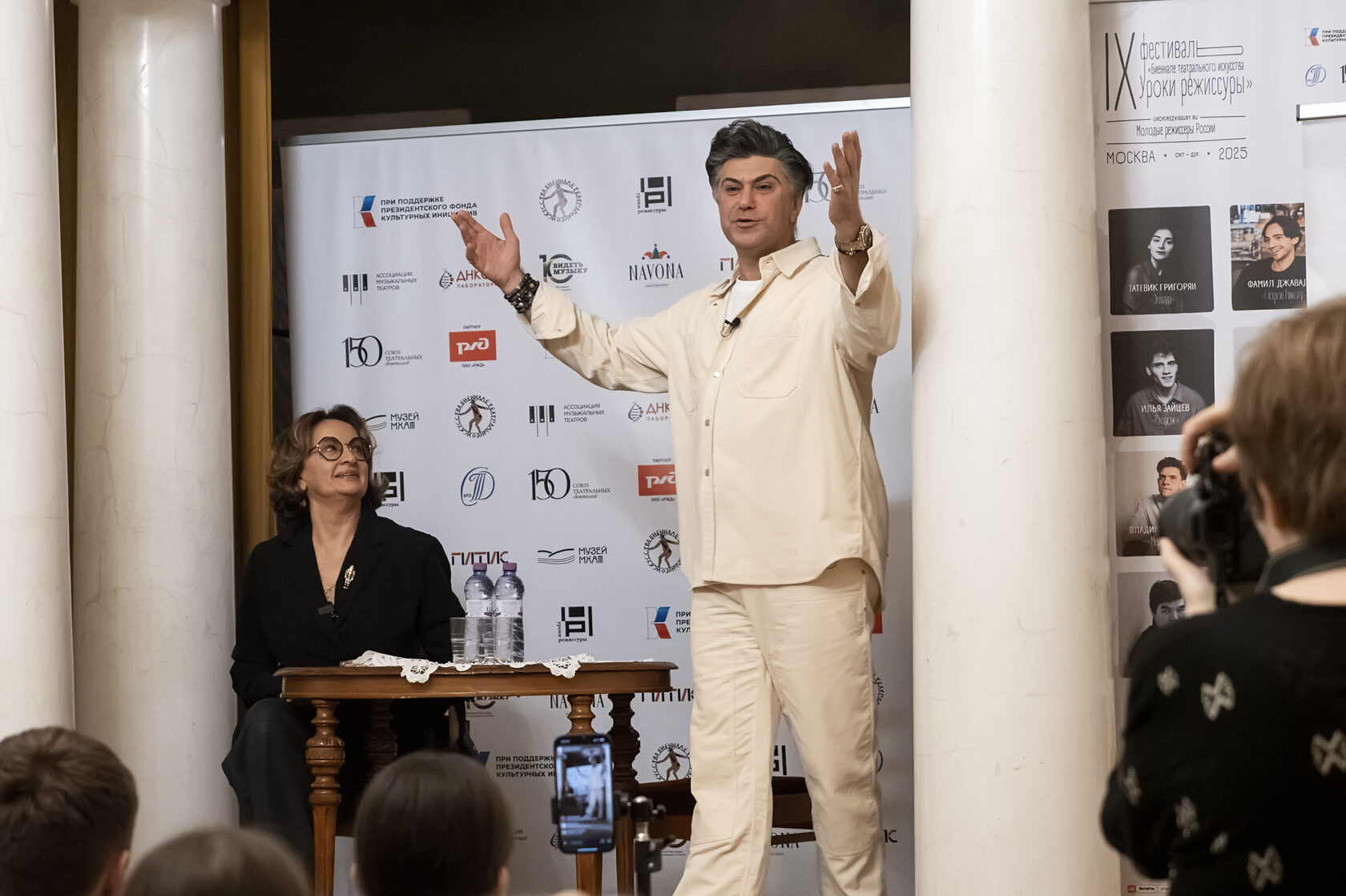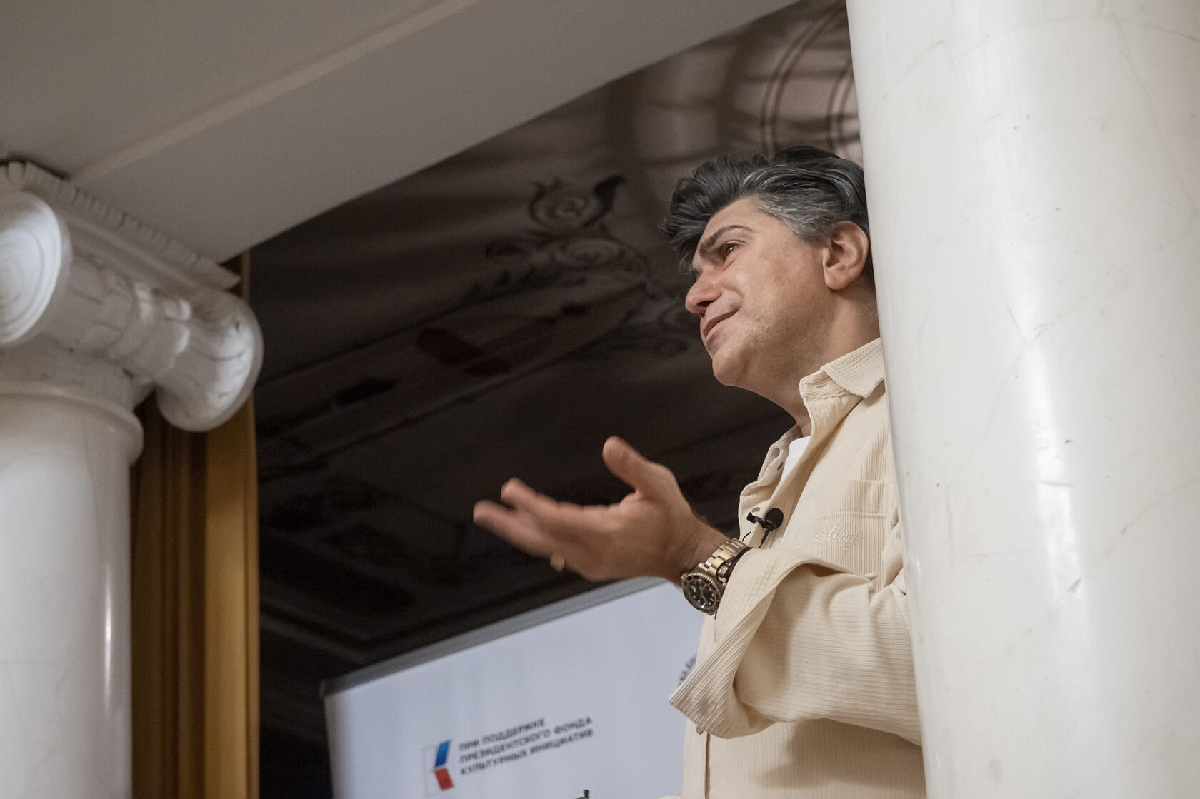 Одна из самых громких премьер сезона – спектакль «Кабала святош» МХТ имени А.П. Чехова, где Николай Цискаридзе предстал в роли Людовика XIV, впервые выступив на драматической сцене. Об опыте пребывания в новом театральном качестве, об актерском освоении драмы шла речь на предстоящей мастерской. Однако тема – основной, но не единственный вектор разговора, в котором были затронуты и более широкие вопросы культуры, искусства, личного творческого пути народного артиста России, премьера Большого театра, ректора Академии русского балета имени А.Я. Вагановой Николая Цискаридзе.