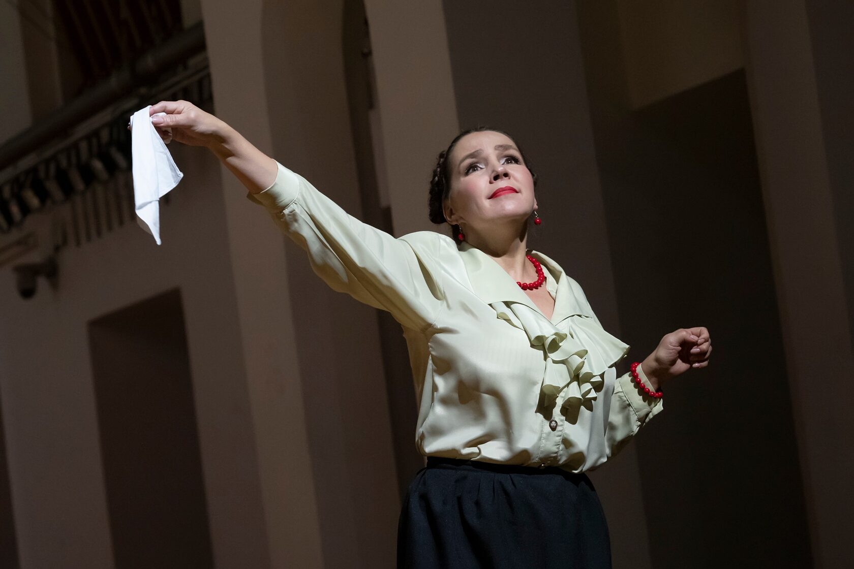 Постановка стала дипломной работой режиссера — первым спектаклем в ее профессиональной жизни. Поверить в это, впрочем, трудно: «Эллада» изысканна по форме и мудра, глубока, содержательна по существу. Умная, тонкая работа с текстом — инсценировку выполнила сама Татевик. И совершенно замечательное, редкое умение взаимодействовать с артистами, укреплять их подробными действенными задачами. Небольшая труппа этого маленького театра очень сильна: в игре актеры мастерски совместили земное и вышнее, бытовое и надбытовое, человечески-конкретное и обобщенно-притчевое начала.