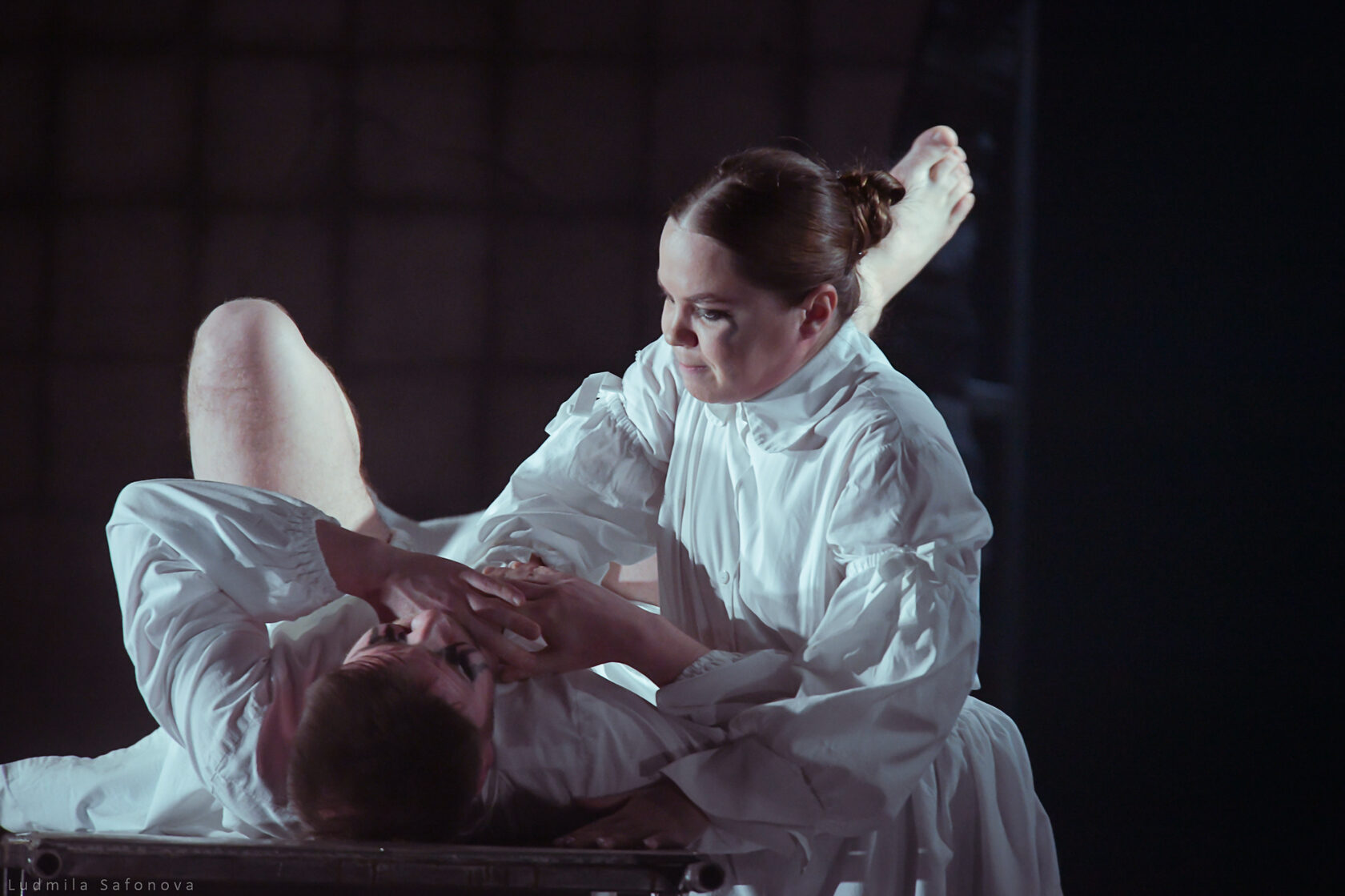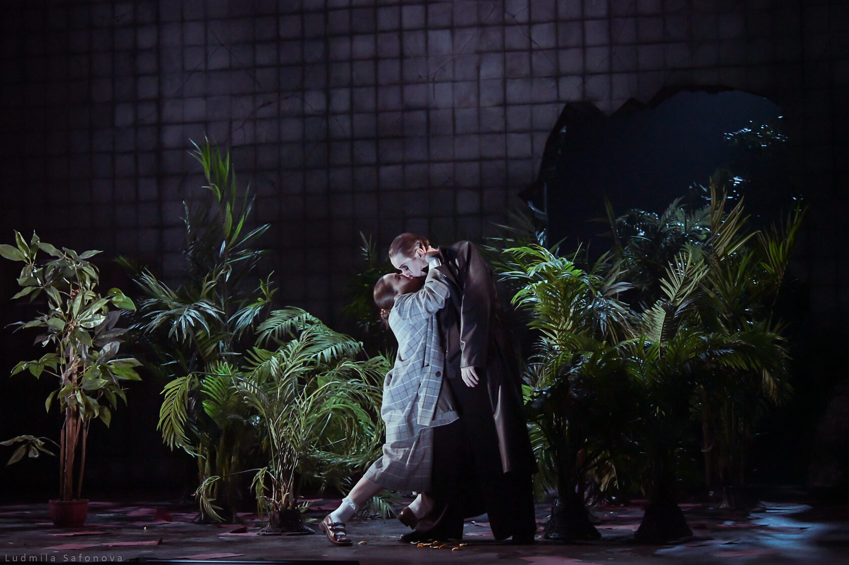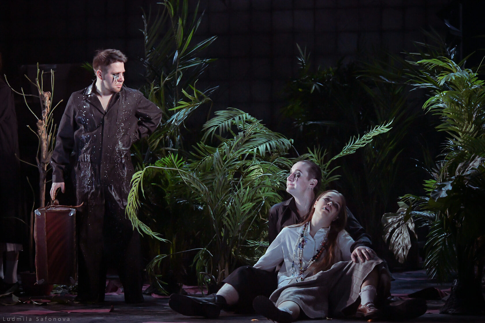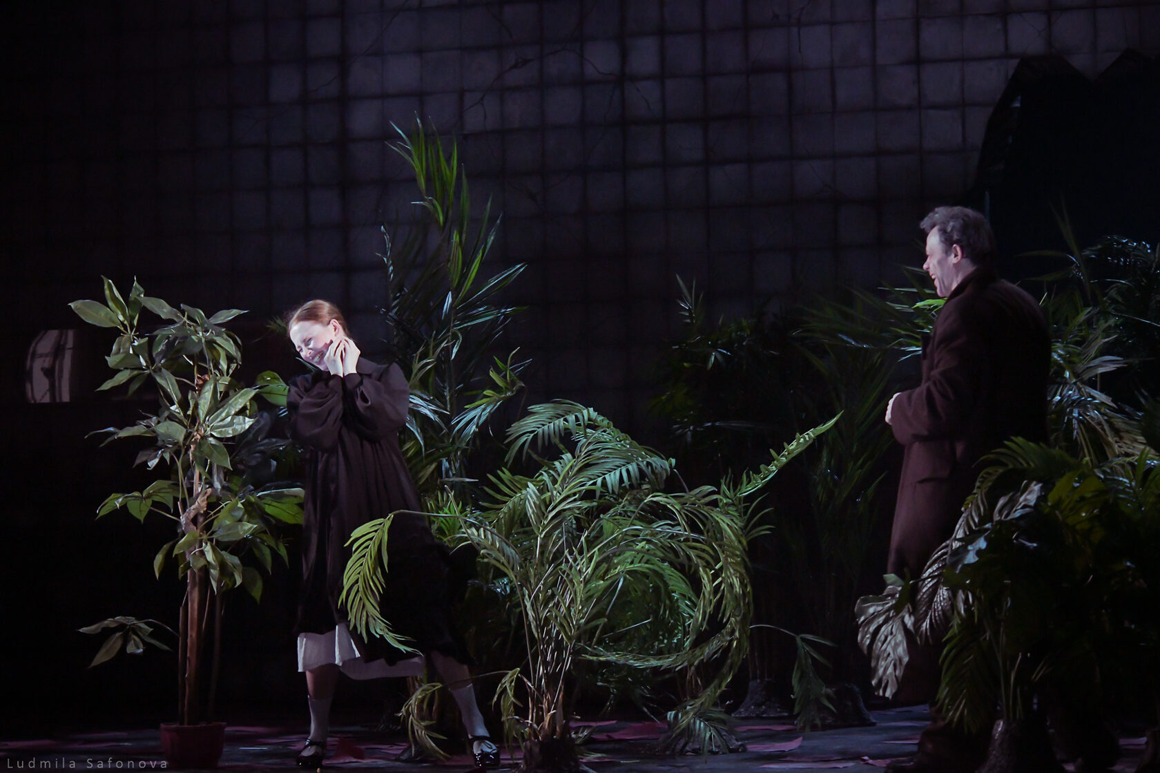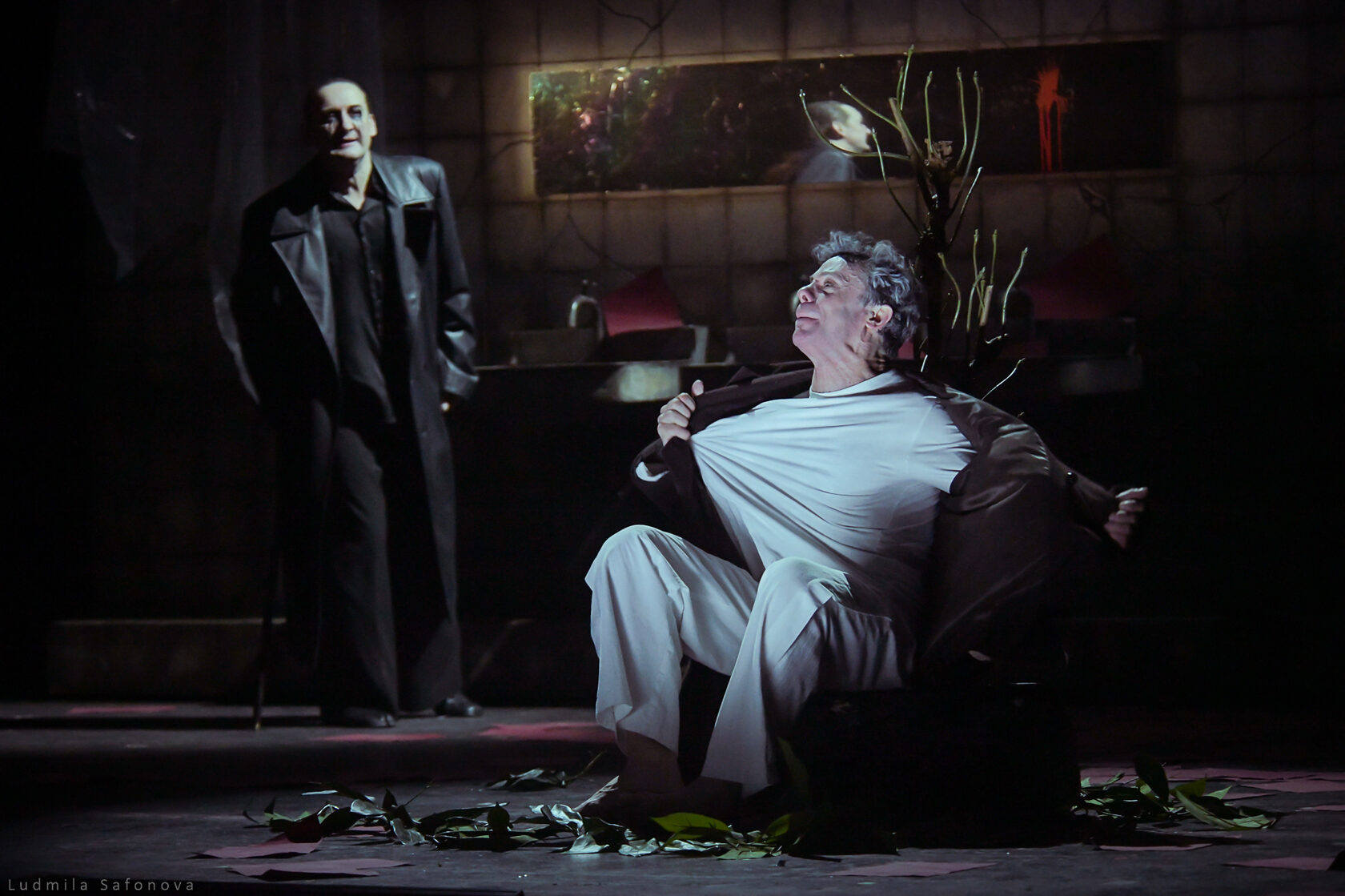 Спектакль бесконечно красив и бесконечно мрачен. Молодой, но уже опытный режиссер Сергей Тонышев открывает здесь новые грани своего таланта. Мастер созерцательного меланхоличного театра с тихо вьющейся действенной кантиленой, режиссера оттенков и полутонов, в спектаклях которого артисты часто играют как бы шепотом, предстает в неожиданных красках. Свойственная его спектаклям мягкая печаль и столь же мягкий закатный свет уступили место резким контрастам, а актеры «Сатирикона» существуют в присущей им активной манере властного лицедейства. Это бурный спектакль — в отличие опять же от многих других постановок Тонышева, где история движется то спокойной полноводной рекой, то тонким чистым ручьем. Здесь же — страстное раскаленное действо.